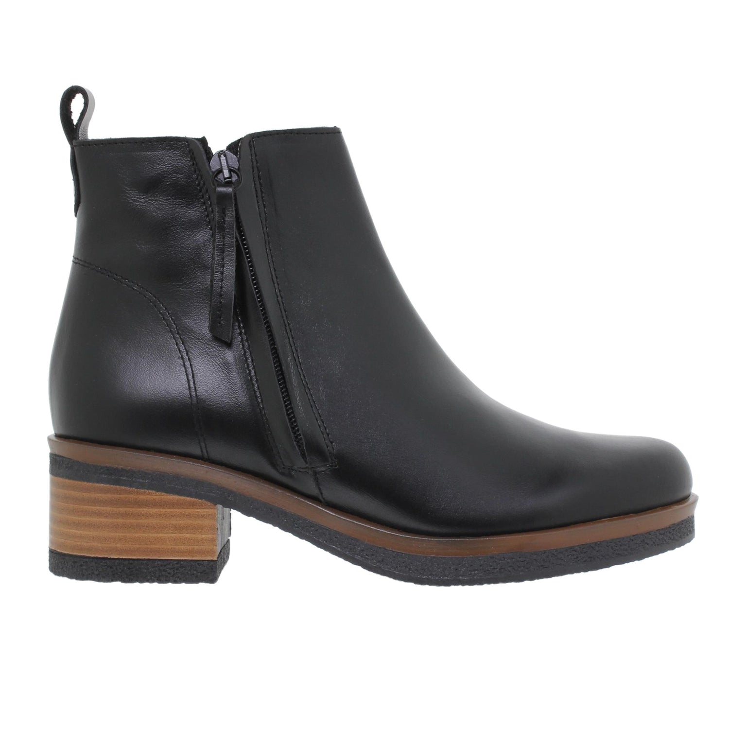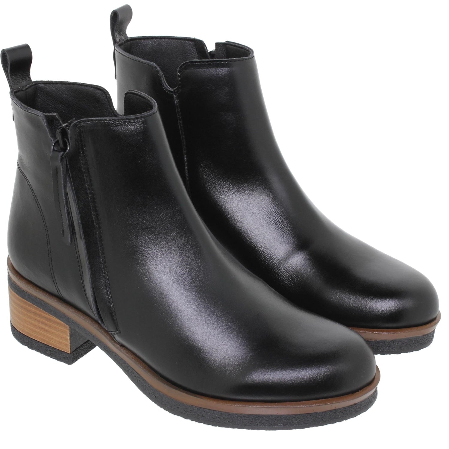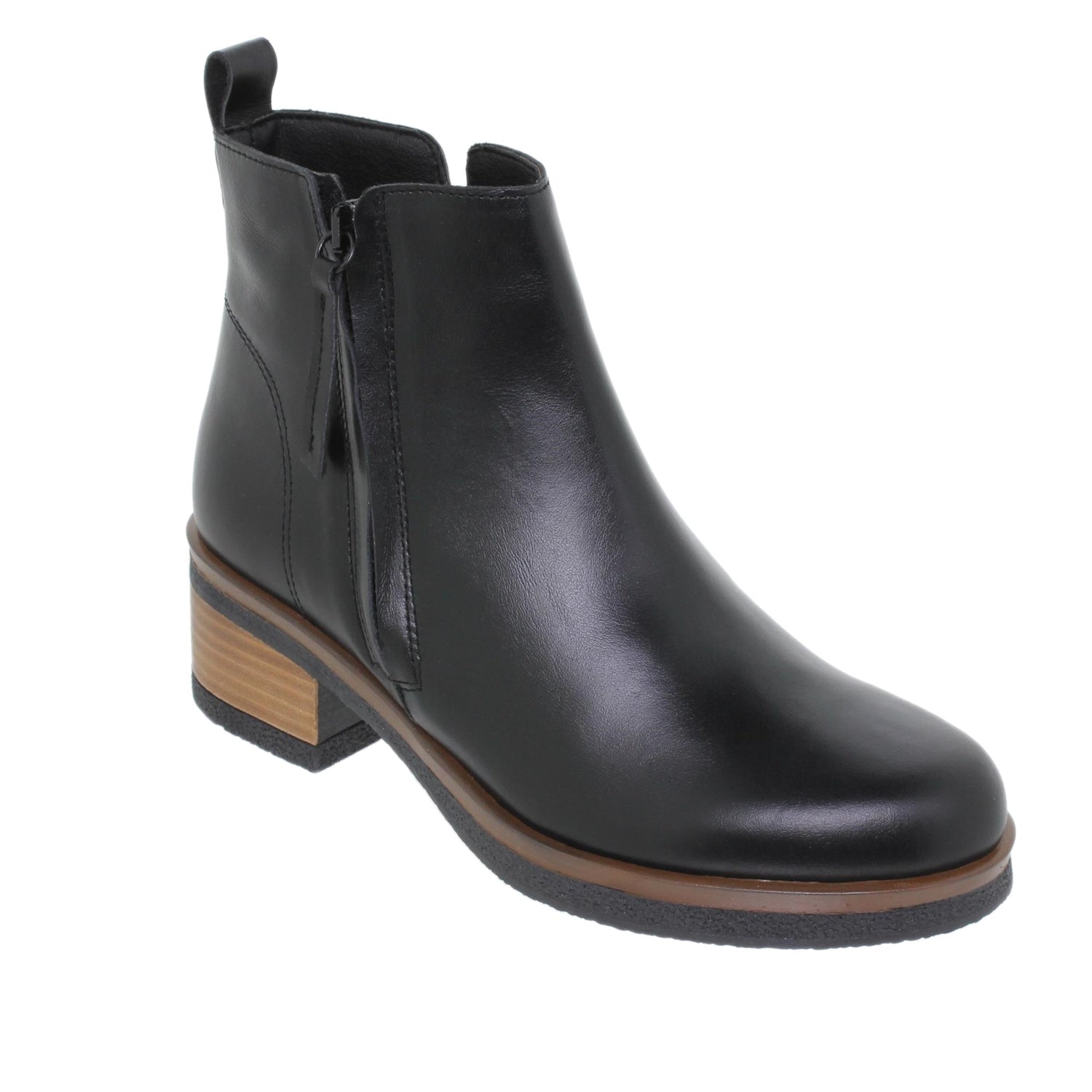 Botines de mujer negro cuero, en piel, con un tacón muy bajo. Botines ideales y en tendencia para esta temporada otoño/invierno