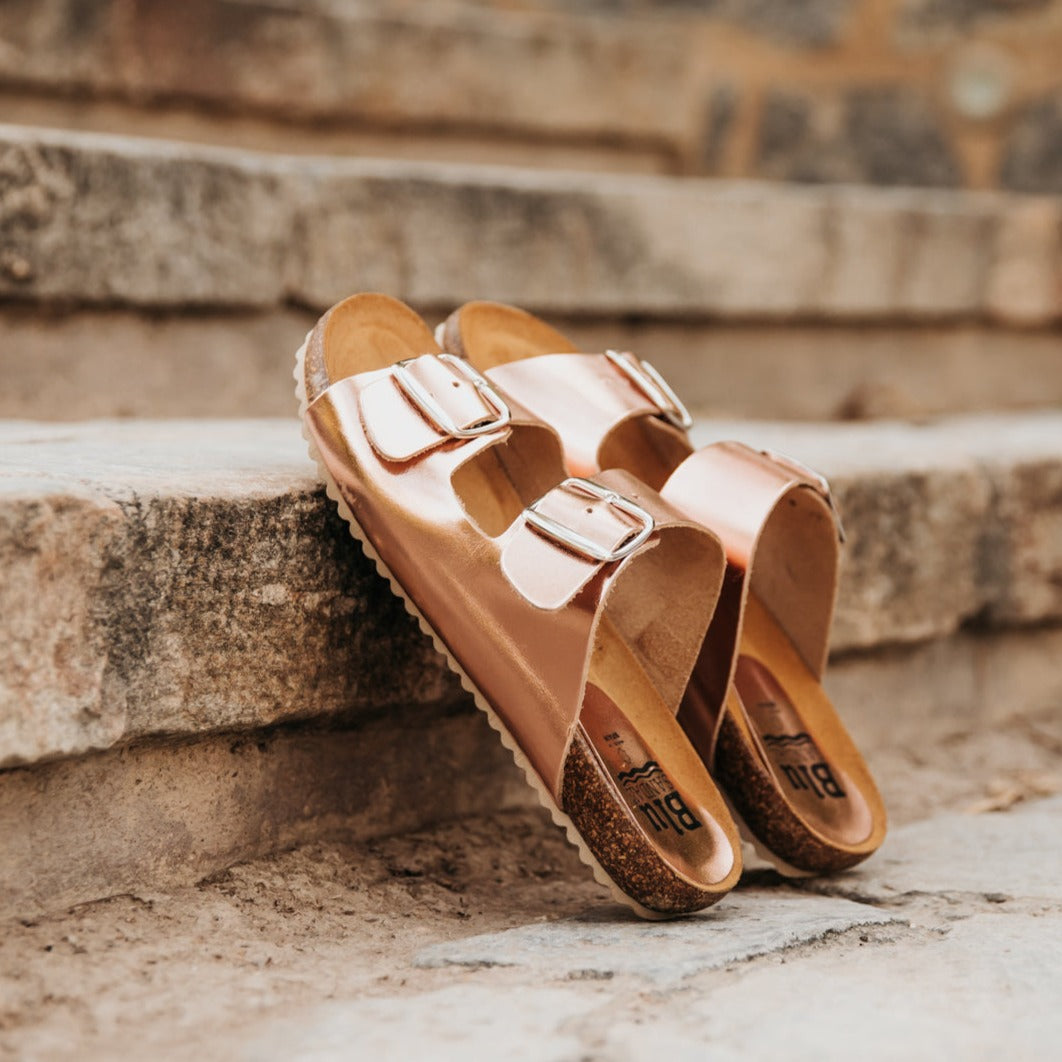 Sandalia Bio Mujer piel Rosa Metalizada Mirm