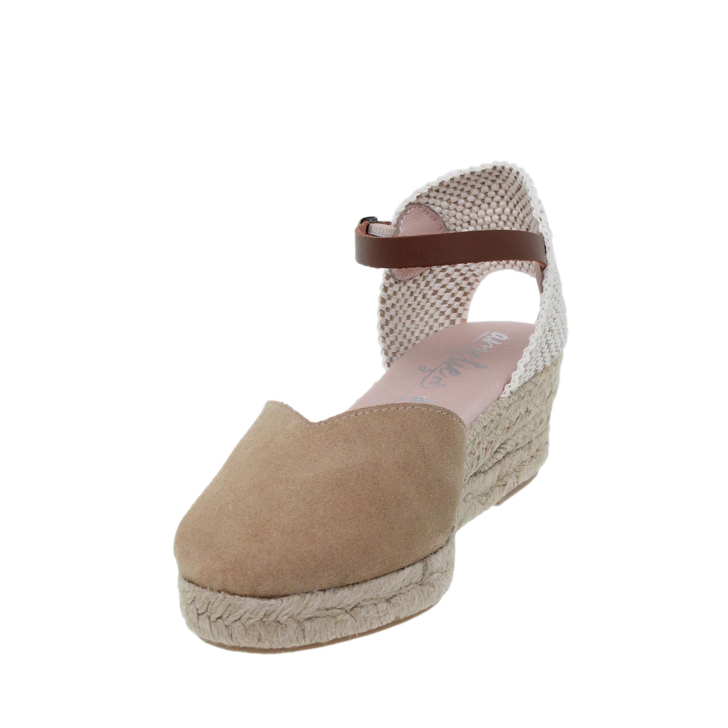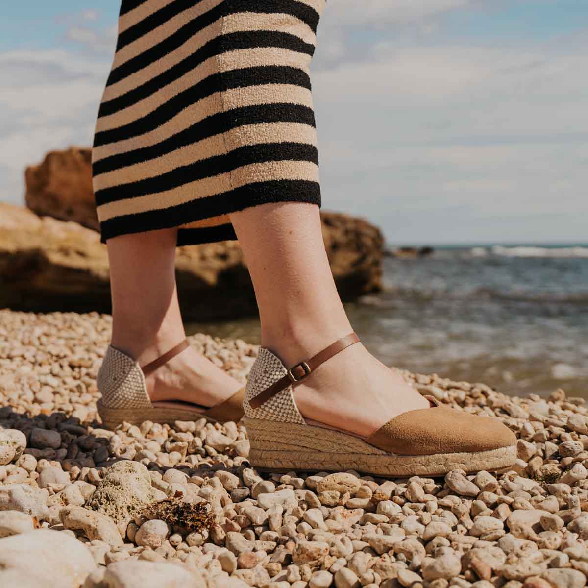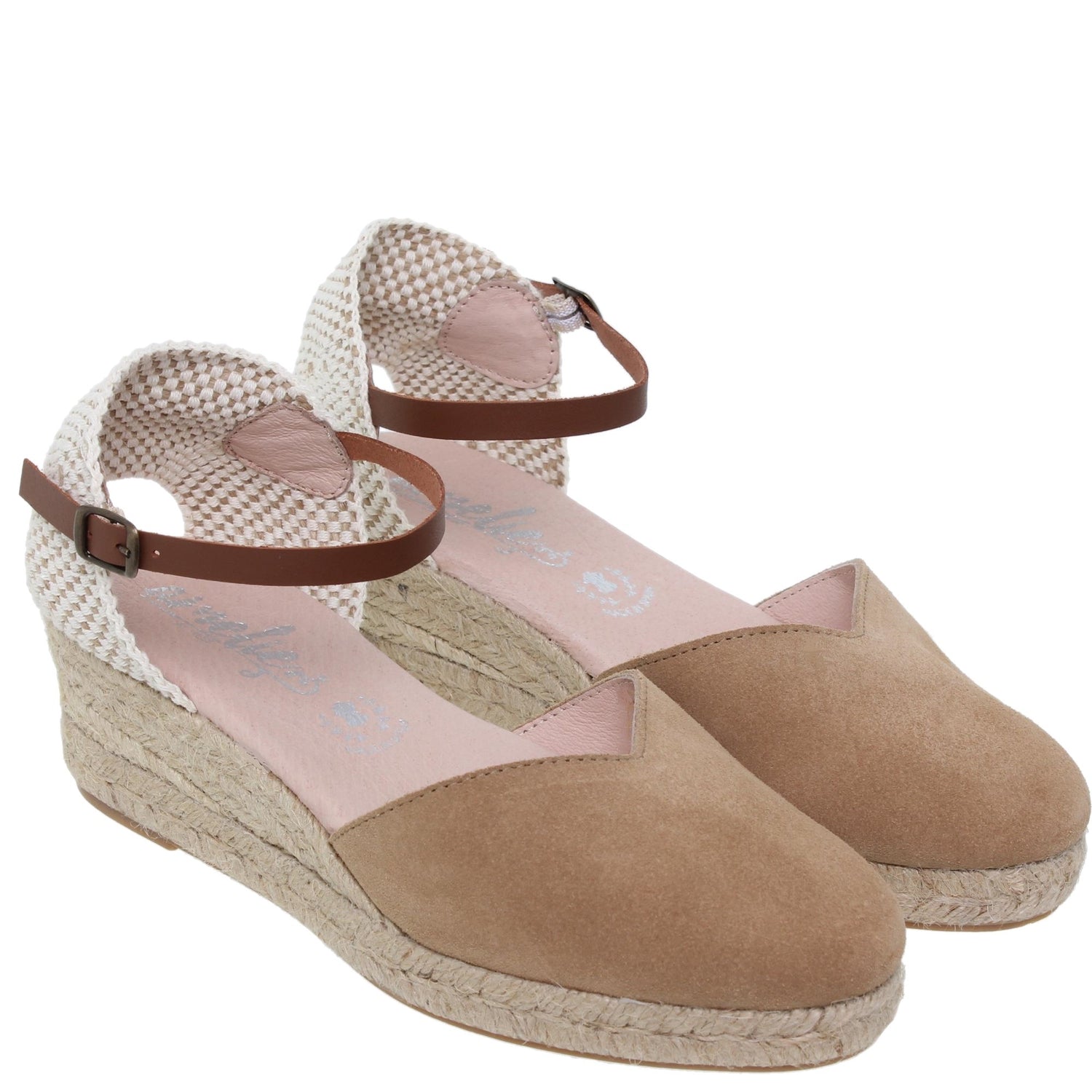 Sandalia cuña alpargata esparto mujer piel arena Cactus