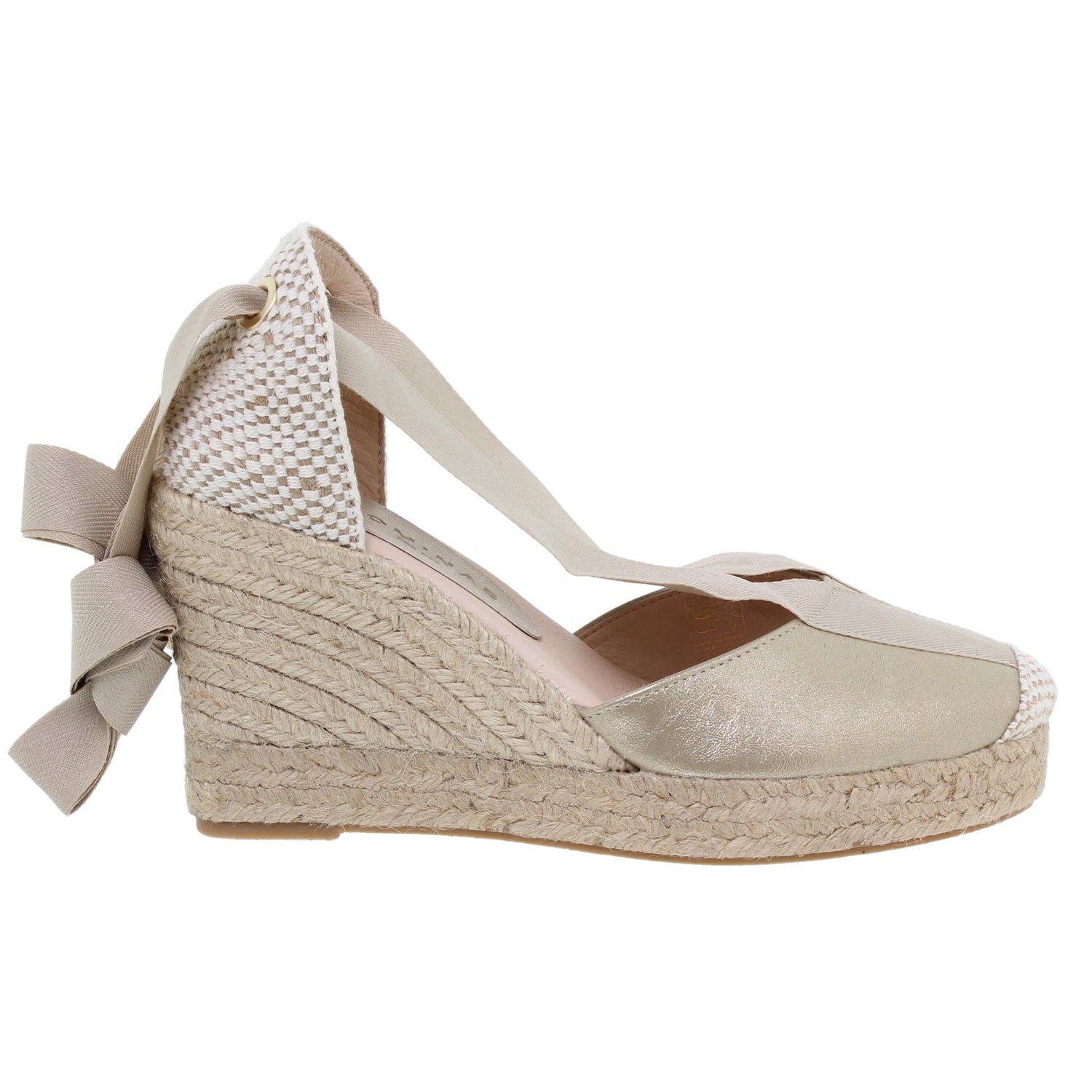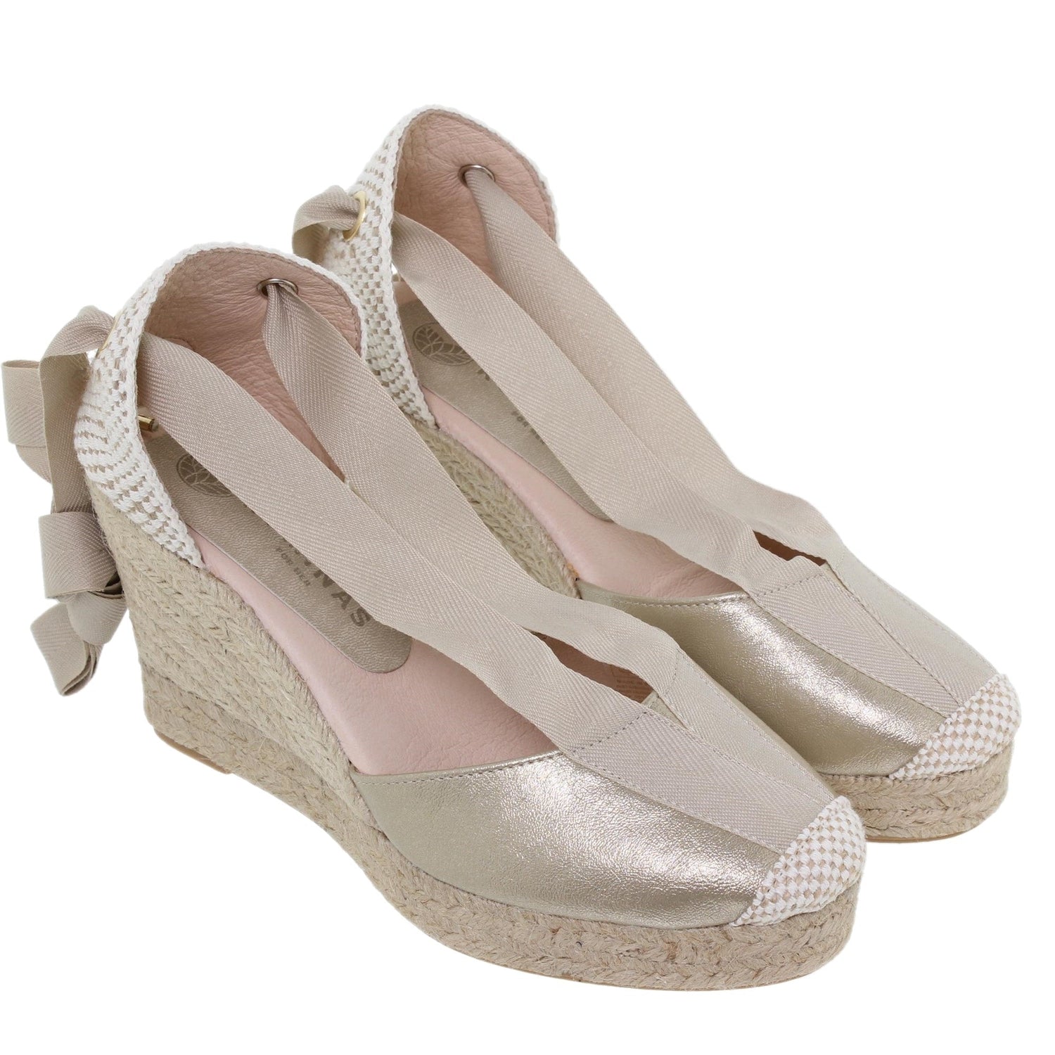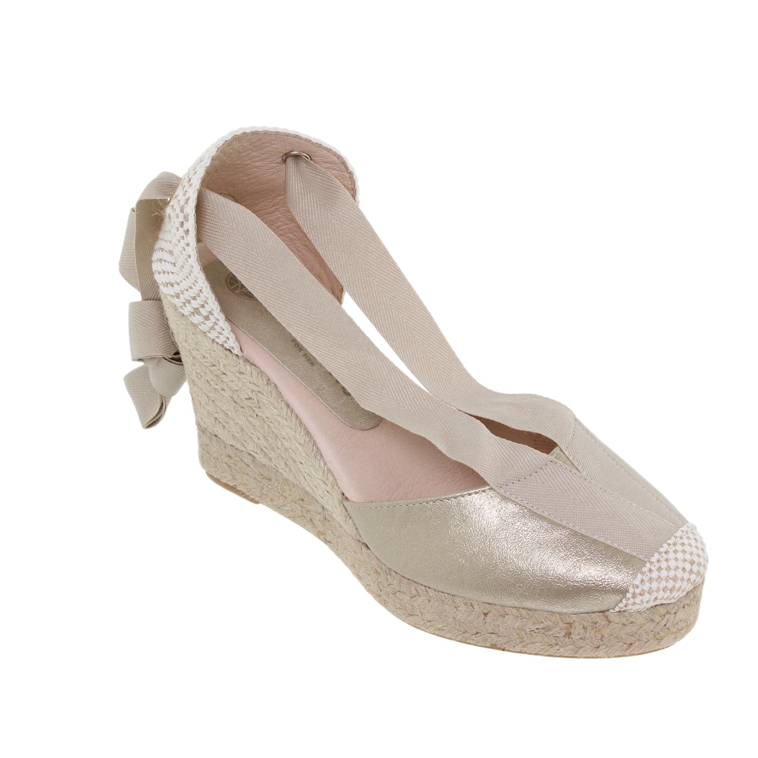 Sandalia Cuña Alpargatas de esparto Mujer Lola Dorada - Platino