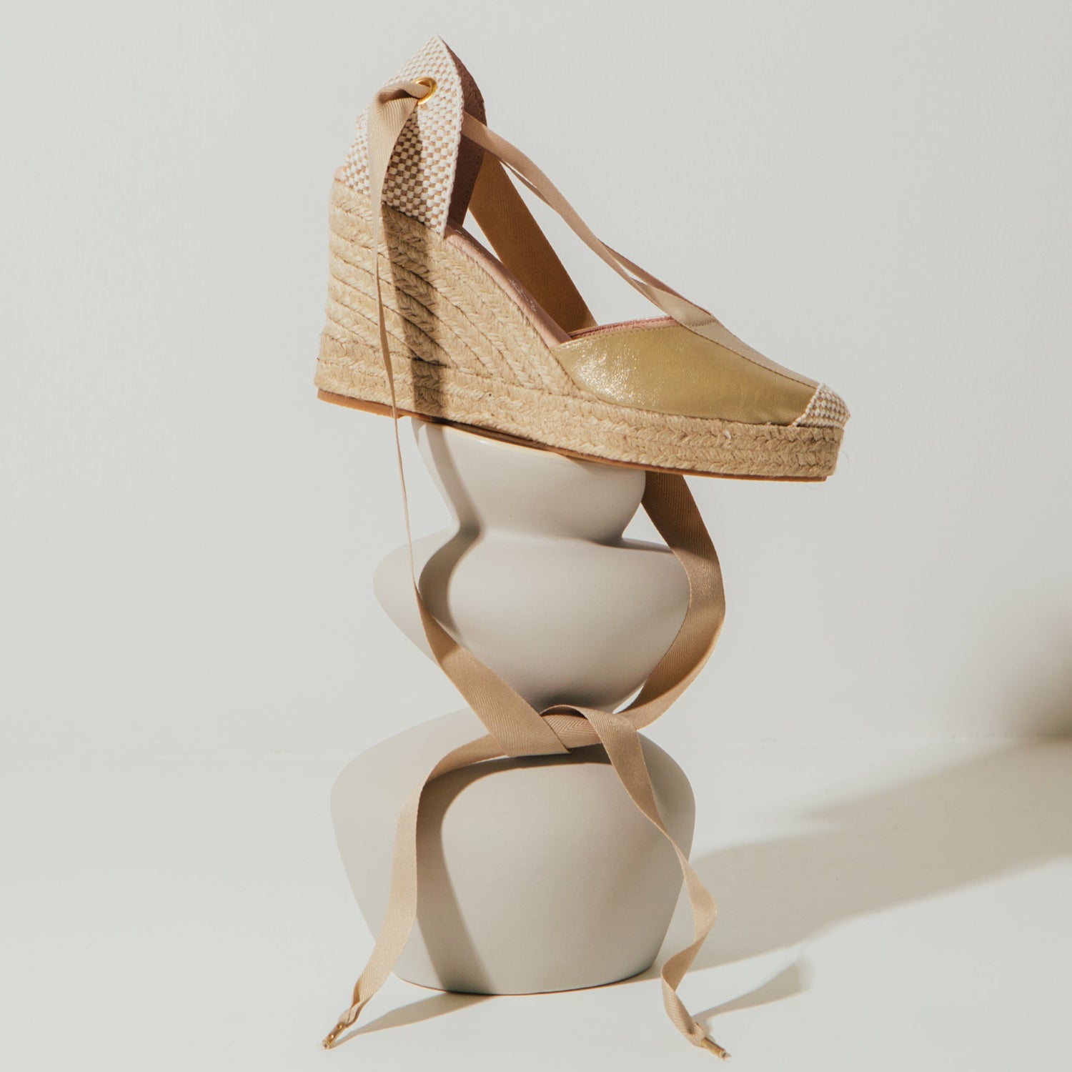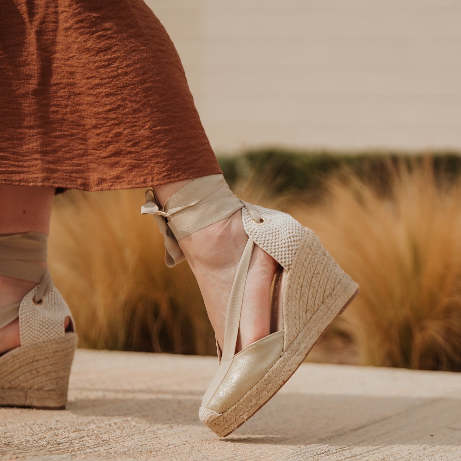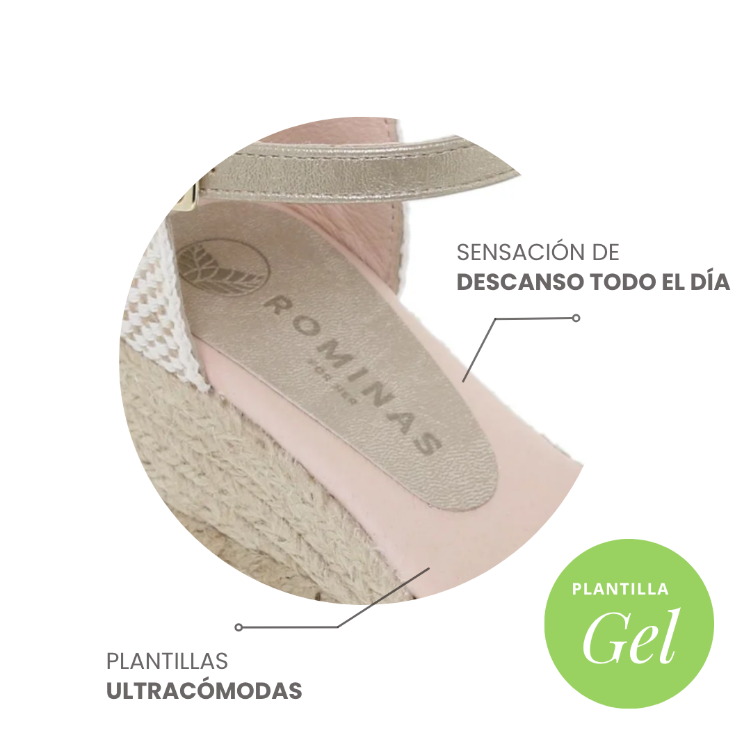 Sandalia Cuña Alpargatas de esparto Mujer Lola Dorada - Platino