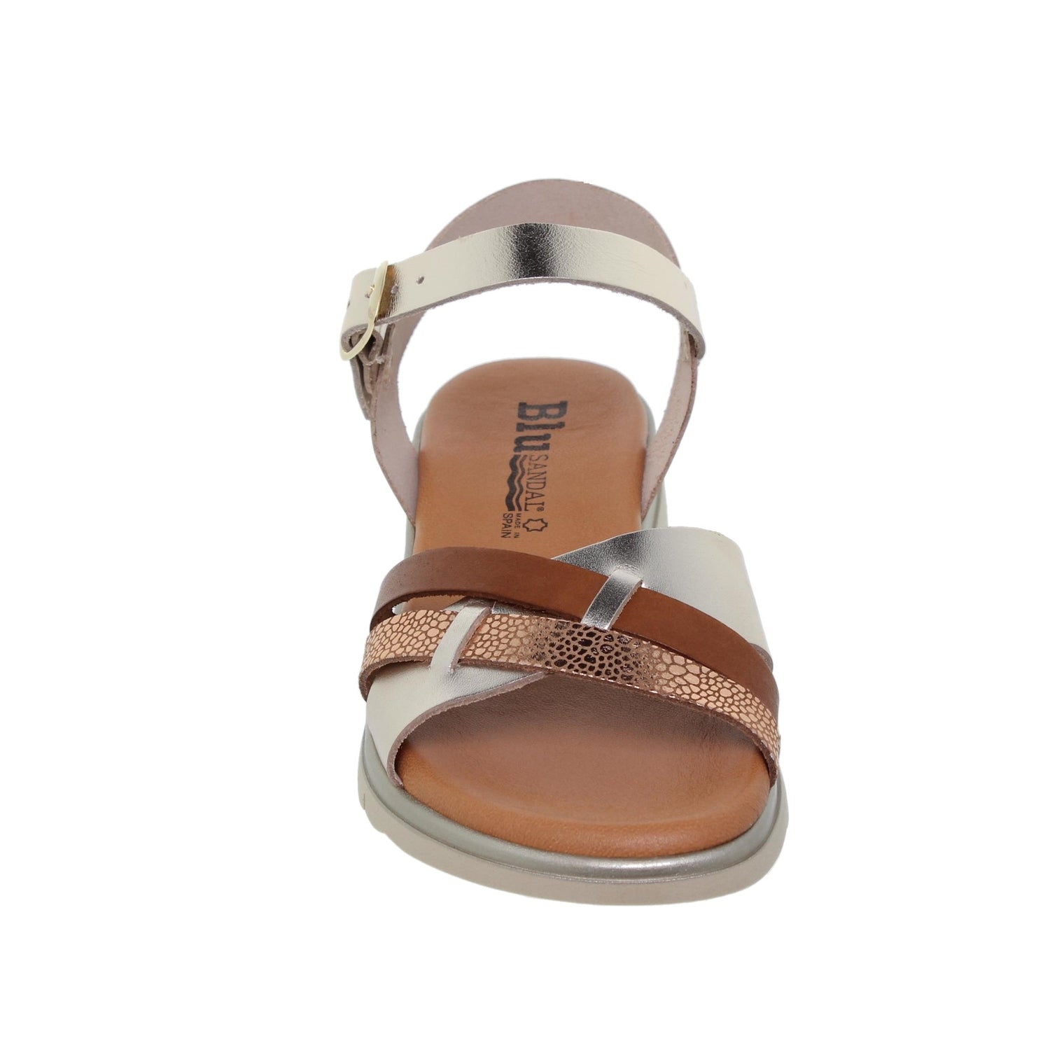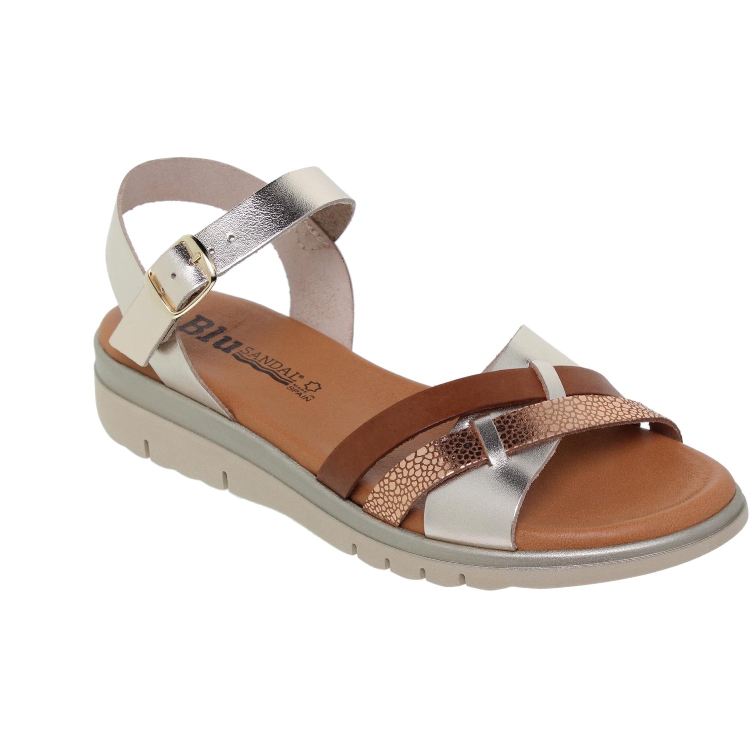 Disfruta de la elegancia y comodidad que ofrece esta sandalia Casandra en platino, con una cuña de 3,5 cm que realza tu estilo sin sacrificar confort.