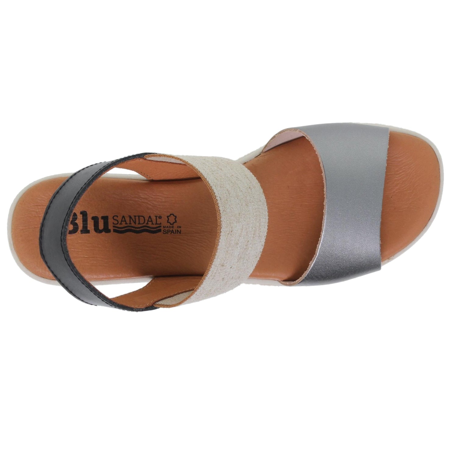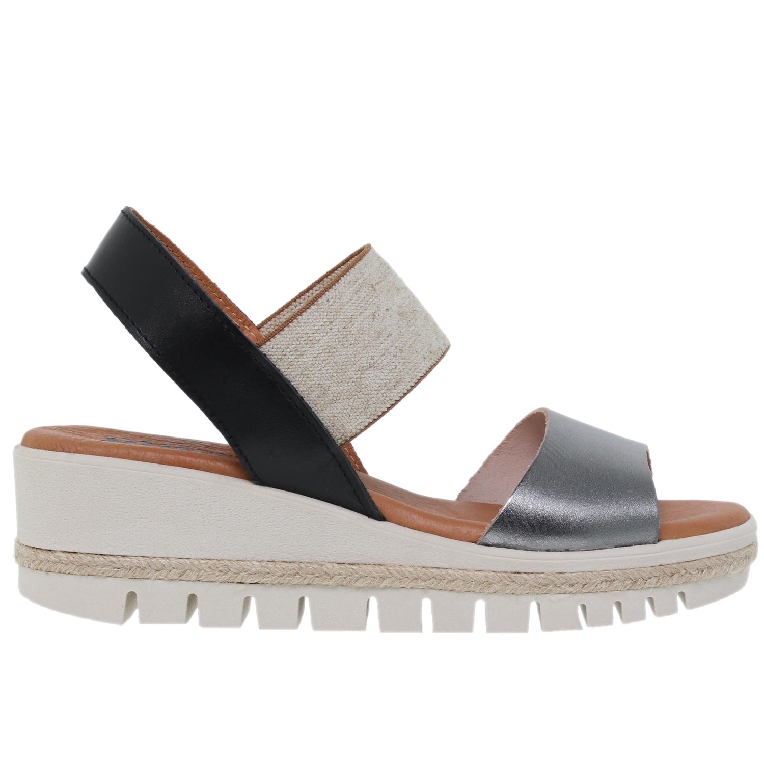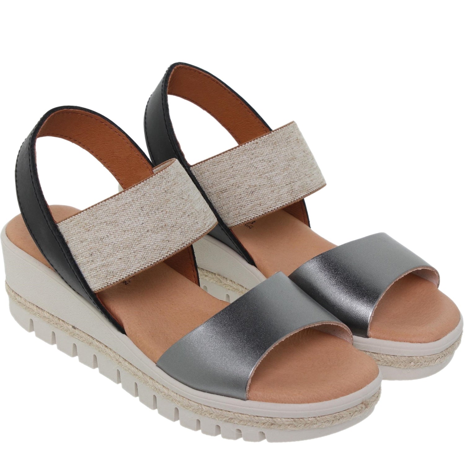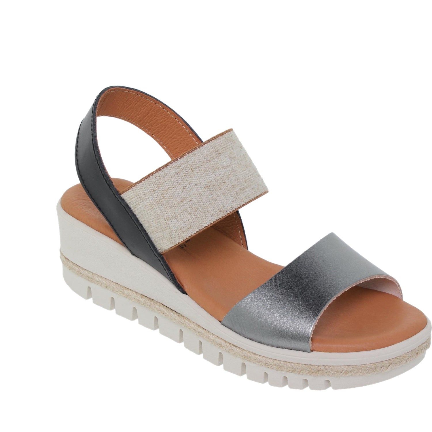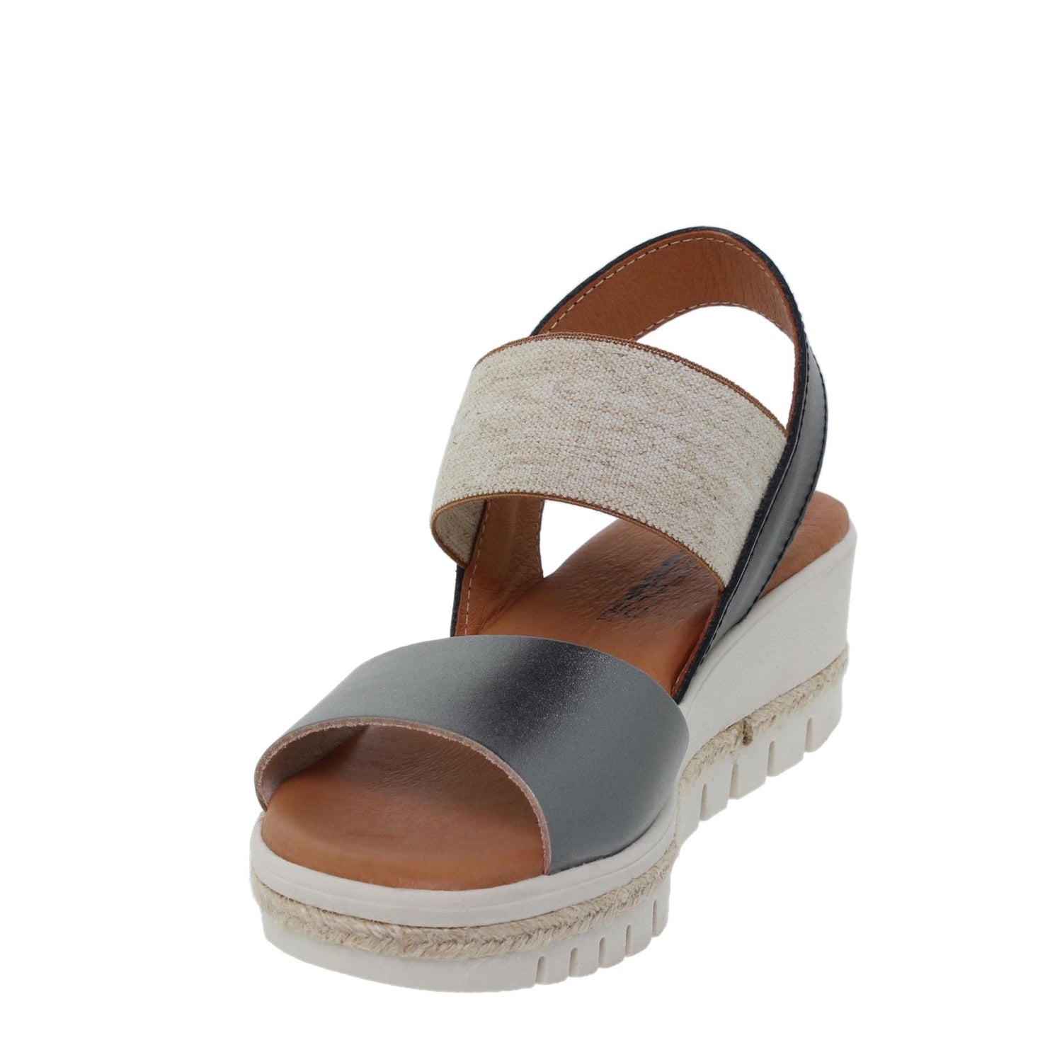 Sandalia cuña mujer piel plomo Cuarzo