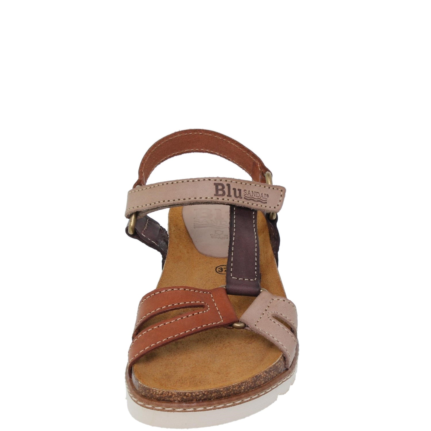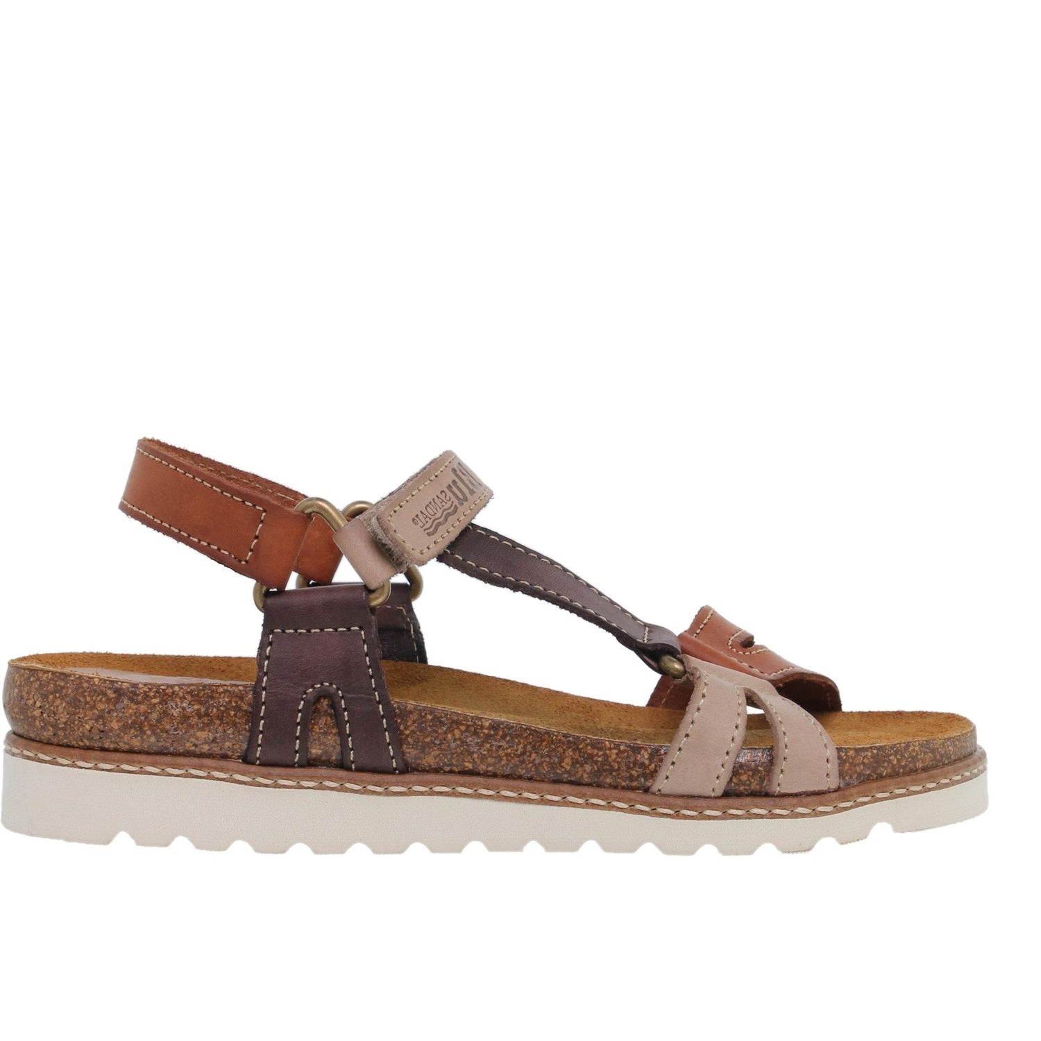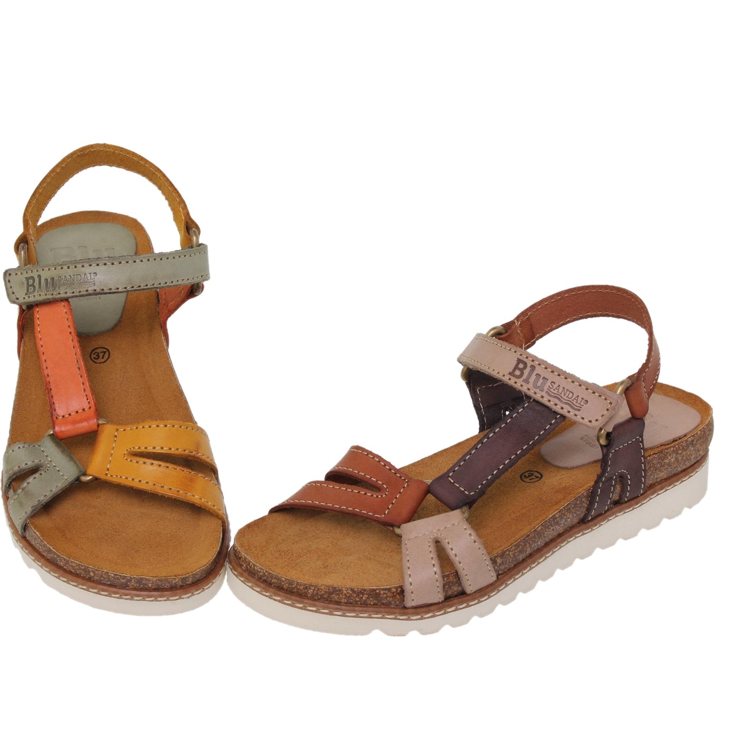 Sandalias deportivas planas de piel para mujer combinación de planta bio y suela sport. El diseño de tiras de piel multicolor con cierre al tobillo en velcro es lo más cómodo que podrás probar en tus pies.