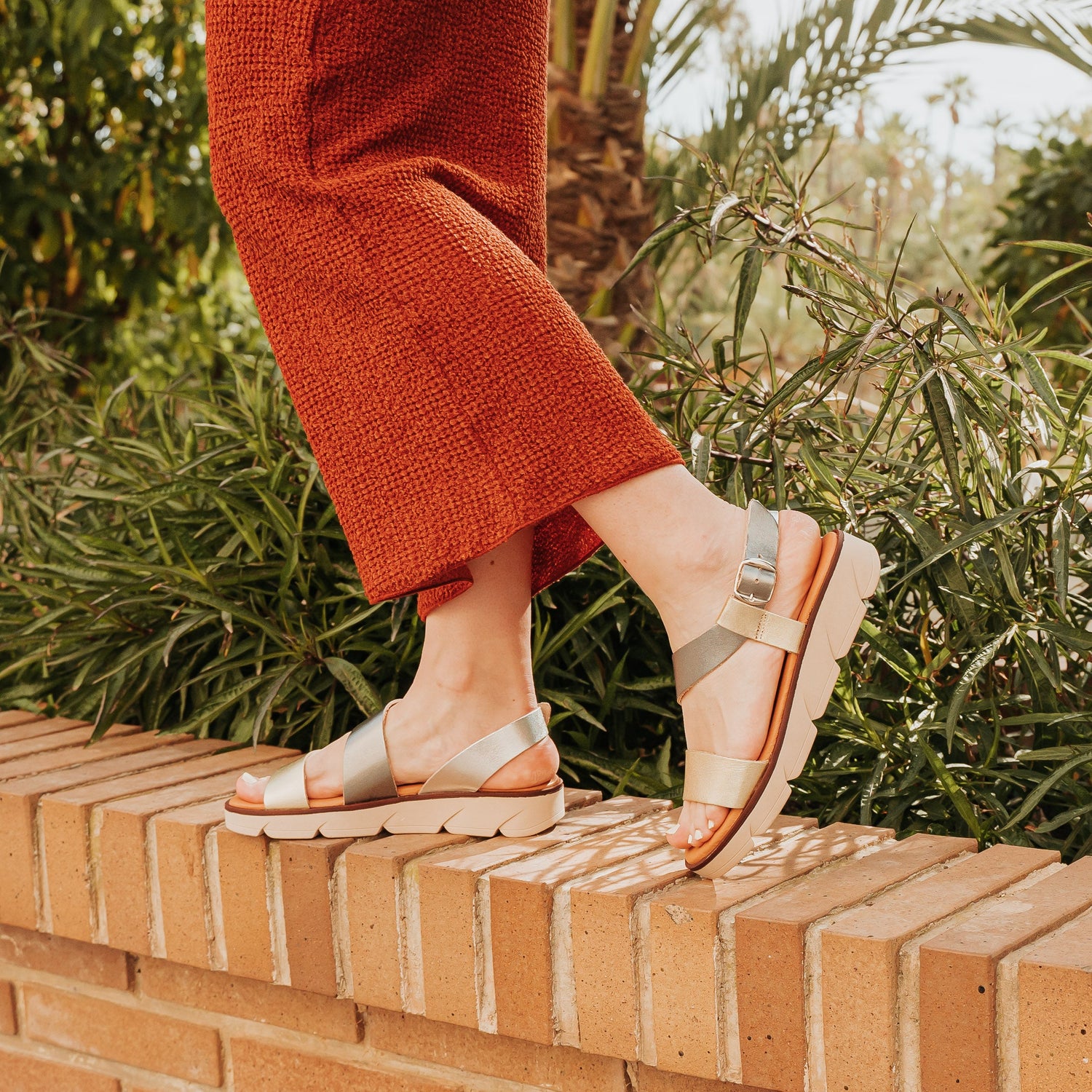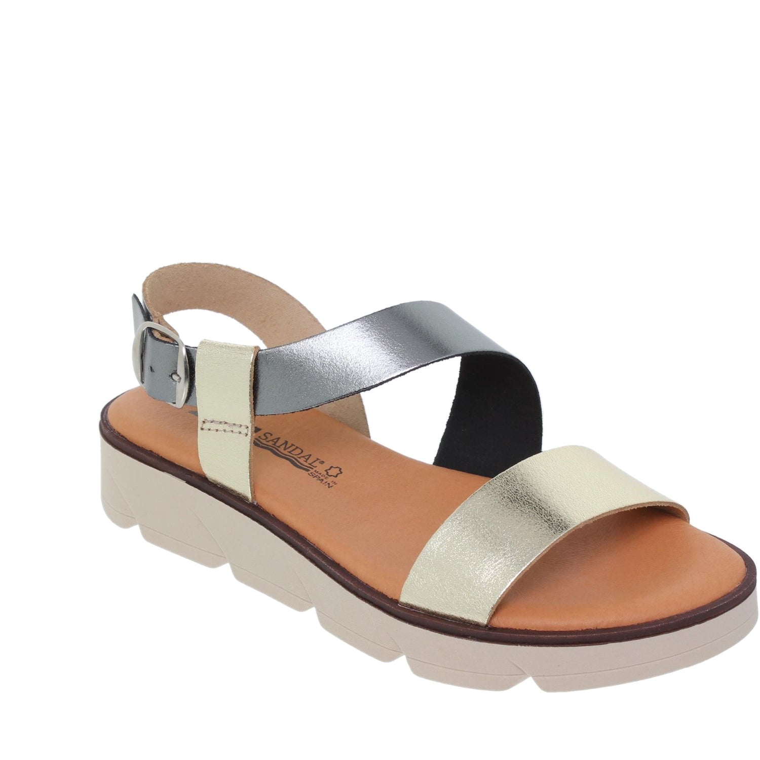 Sandalia plana mujer piel metalizada Onix