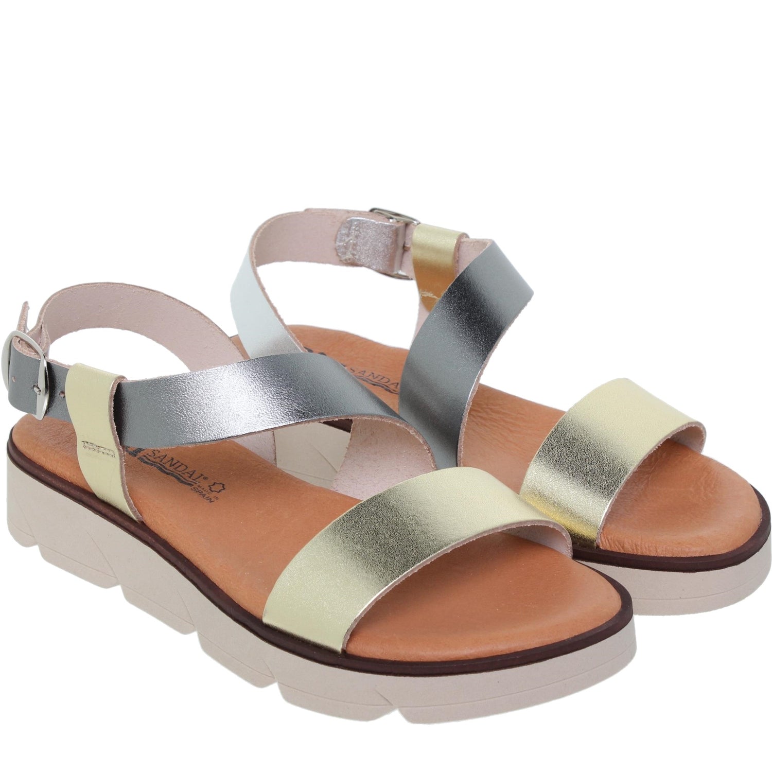 Sandalias planas de piel para mujer con plataforma de 3 cm. Este tipo de sandalias son un best seller cada verano. ¡Vuestras favoritas sin duda! Por su diseño, su combinación de colores y lo más importante, por su comodidad gracias a su plantilla de gel ¡no hay nada igual! Disponibles hasta la talla 42.
