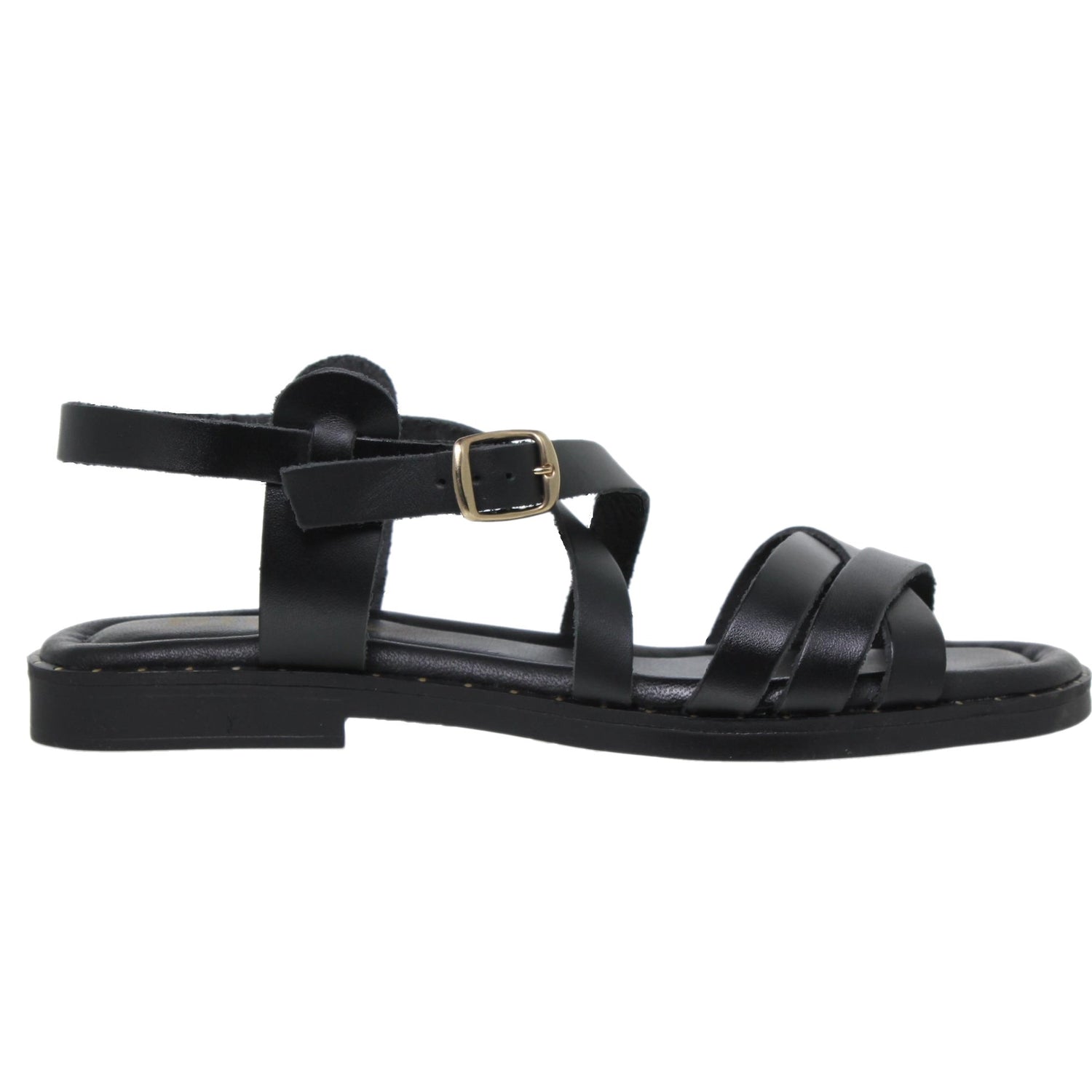 Sandalias planas mujer piel negro Aroa